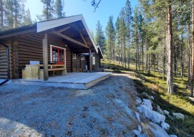 - in Rena you turn right and follow the 215 which turns into the Fv607 at the river ‘Søndre Osa’. Keep following until you reach Åkrestrømmen. Turn right on the 217. Continue for 6.5 km until you see a sign “Renåfjellet”. Turn right and follow the road to the barrier. Open the barrier and go straight ahead. +/- 500 meters further you will see the cabine on the right side.